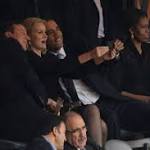 President Barack Obama and British Prime Minister David Cameron posed for a selfie with Danish Prime Minister Helle Thorning-Schmidt at Mandela's service.